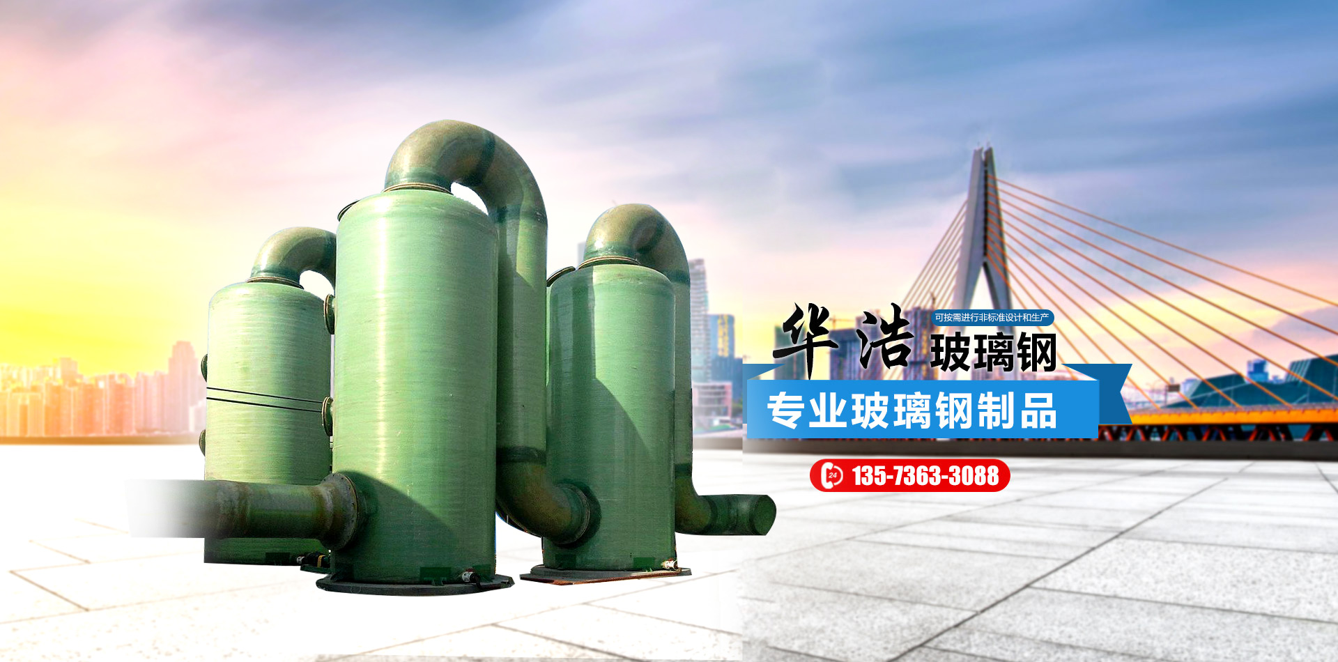 山東華浩玻璃鋼有限公司,位于世界風箏都濰坊市南三十公里處,是生產(chǎn)各種玻璃鋼制品的專業(yè)公司。   華浩玻璃鋼生產(chǎn)各種立式、臥式玻璃鋼罐、玻璃鋼儲罐、玻璃鋼運輸罐、標準運輸罐、玻璃鋼鹽酸罐、化學反應罐、真空壓力罐、設備罐、復合罐、玻璃鋼儲槽、大型玻璃鋼容器;玻璃鋼化糞池;各種型號的橫流式、逆流式(圓形、方形)玻璃鋼冷卻塔;機械纏繞玻璃鋼管道、管件、壓力管道,有機、無機通風管道、空調(diào)管道;漂液洗鼓、耐腐耐高溫反應釜、印染布車、組合式玻璃鋼水箱、玻璃鋼風機、玻璃鋼不定型工藝品等二百多個品種。